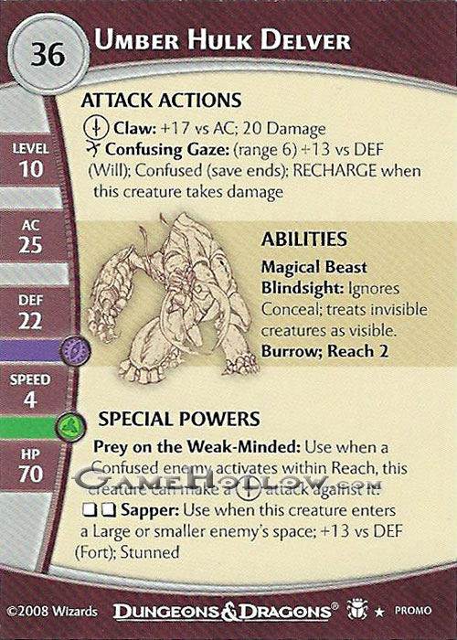 / Stat Card Promo – Umber Hulk Delver 2.0 (Desert of Desolation #57)